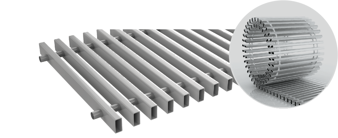 Grille de recouvrement de longueur 100 cm, largeur 26 cm, avec finition acier, de couleur RAL 9006 (gris), grille de type enroulable, pour caniveau chauffant séparé, sans traitement particulier. La dimension de la grille indiquée dans le code de commande correspond à la dimension dans le code de commande du caniveau chauffant auquel la grille est destinée. La dimension nette de la grille est sur demande.