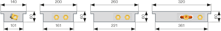 Indiquez toujours les dimensions en cm en incluant le cadre Thin dans le code de commande (voir tableau des puissances).