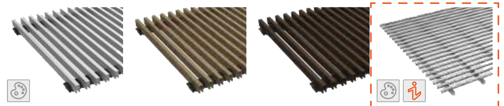 | V réversible | 1 sans traitement | T pour grille Thin | 1 argent anodisé | P droit | 0 sans bord abaissé |